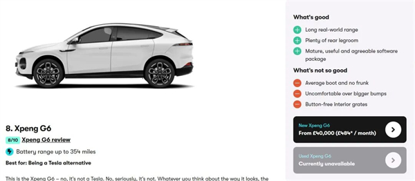 根据戴伦·凯西的分析,等欧洲传统汽车大厂回过神来。"中国品牌汽车早已摆脱'廉价'的固有标签。如今,中国车企推出的车型大多能与英国、欧洲、日本及韩国的竞品势均力敌。比如,坐进比亚迪海豹或小鹏G6车内,你会为其呈现的品质感到惊艳。"Carwow的榜单列举了最受英国消费者欢迎的10款中国汽车。