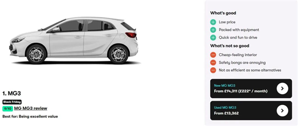 中国车是怎么在欧洲崛起的?知名英国汽车媒体carwow根据 75266条用户的"买家秀",制作了一期名为"英国最好的中国汽车"专题,专题的编者按揭示了这一秘密。"我们在期待一款能像保时捷或阿尔法・罗密欧那样,真正点燃车迷热情的中国车。但事实上,在车主真正关心的领域,比如性价比、经济性、质保服务等方面,中国品牌已遥遥领先。这也是MG4和MG HS等车型销量火爆的原因。"carwow评论员戴伦·凯西表示。