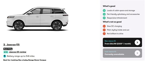 从这份测评榜单来看,目前,"毒舌"的英国媒体还是把中国汽车作为欧系或是日系畅销车的"平替"来看待。比如,奇瑞的Jaecoo E5被称为宝宝版路虎揽胜极光;MG HS是丰田RAV4的"最强平替"。小鹏G6则被视作特斯拉的替代选择。如果暂不考虑未来关税或其他保护性政策的因素,明年,"平替"的标签只会让中国汽车更受欢迎。一方面,英国国家经济与社会研究所(NIESR)表示,"今年下半年,英国的通胀预期仍处于高位,同时,劳动力市场已出现闲置迹象。"在这样的经济形势下,"平替"将大行其道。