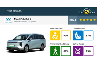 The pure electric Mid-size MPV product of MAXUS – MIFA7 was awarded Euro NCAP five-star certification and ranked as the safest MPV along with the other pure electric Large-size MPV product of MAXUS – MIFA9.
